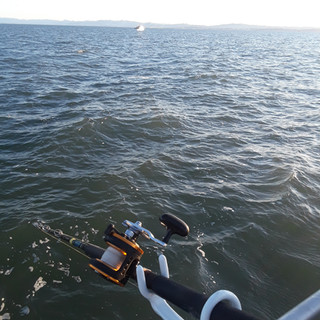 The trip was from 6am to 12pm. We arrived at the marina at 5am and got on the boat around 5:15am. I always like to get there early so I can get my favorite spot on the boat, which is to the right closer to the stern. There were only 12 people fishing on the boat that day. One of the few good things that came out of this pandemic was the reduced capacity for just about every social activity. Sure this isn't good for the captains because they make less money but for someone like me who isn't a people person, it works out just fine. There was a $5 wager for the biggest fish. So the total pot was $60. We left the marina right at 6am and traveled to the south bay to fish.